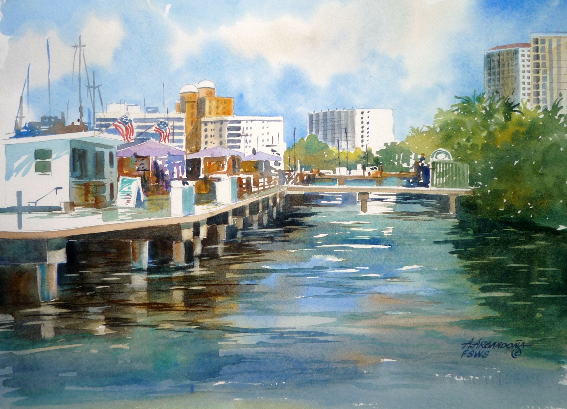 Augusto Argandoña is a well known artist who has gained recognition for his crisp and realistic watercolors. With a degree in Industrial Design from California State University, he has practiced his profession for 20 years all the while pursuing his passion for painting. While working as a Designer he started painting watercolors as a hobby, as his skill expanded, he began doing paintings for relatives and showing his art publicly. The positive response his work received fueled his enthusiasm and in 1990 he began a new career painting full time primarily in watercolors. Based on his formal training as a Designer, Argandoña has developed a distinctive painting style which has wide appeal and provides him with many opportunities to use his talent. His artistic versatility and expertise in the challenging medium of watercolors coupled with his approach at marketing his art has won him a feature article in the June 1992 issue of North Light Magazine, an art publication with national circulation. Previously a resident of East Aurora, NY, Argandoña moved to Sarasota, FL. in 1997.