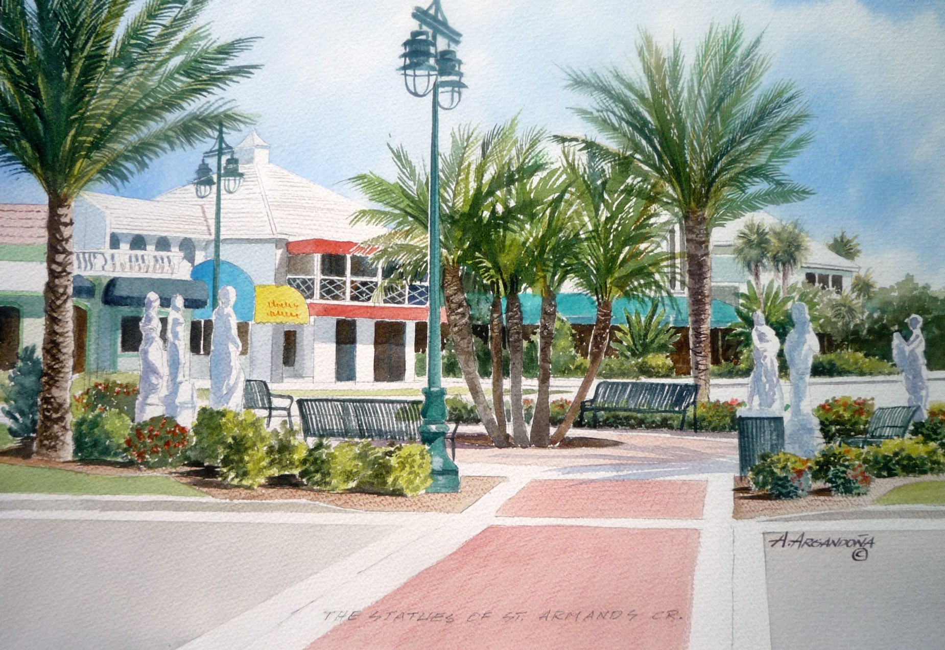 Statues of St. Armands. Watercolor