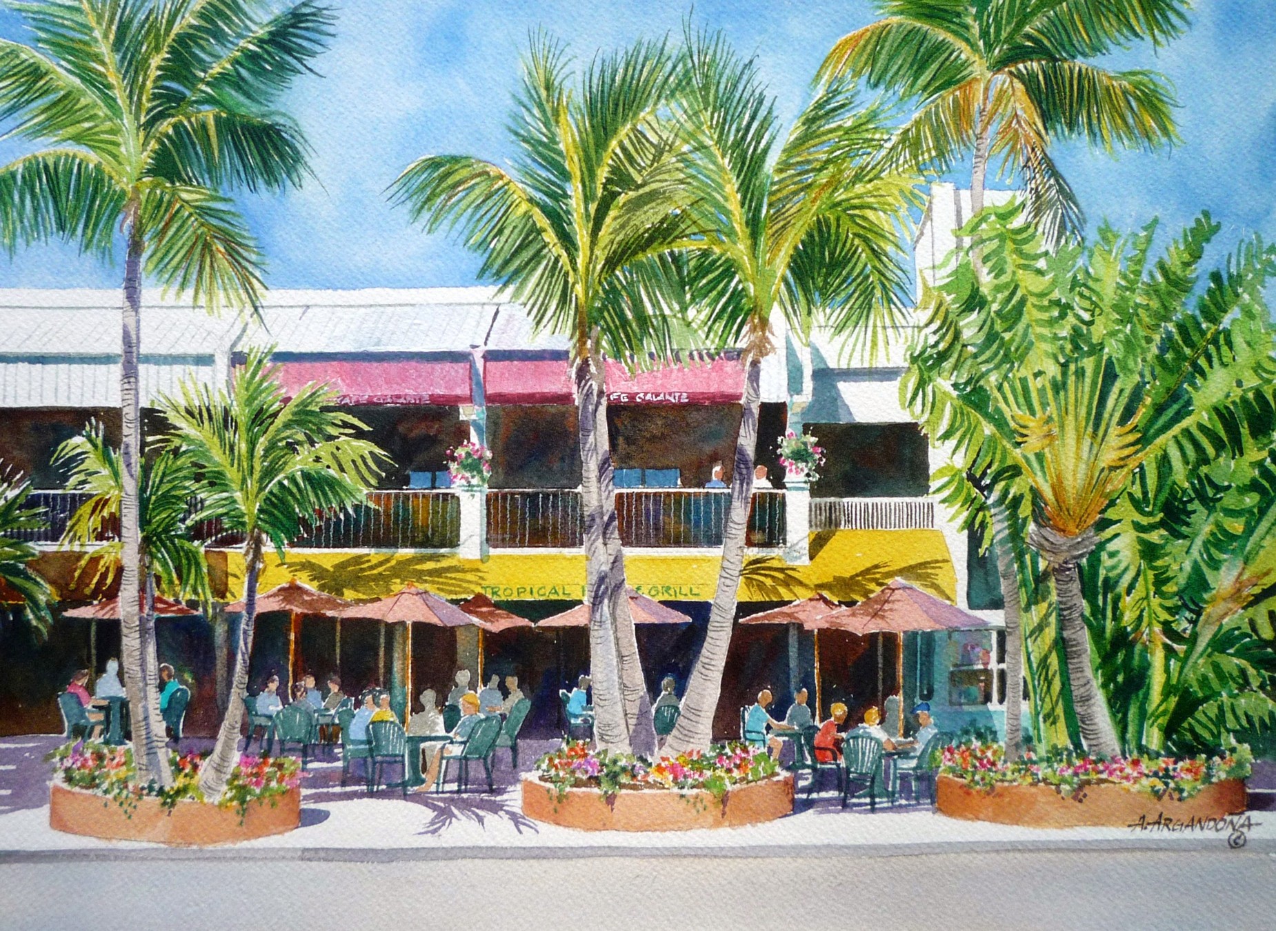 Augusto Argandoña is a well known artist who has gained recognition for his crisp and realistic watercolors. With a degree in Industrial Design from California State University, he has practiced his profession for 20 years all the while pursuing his passion for painting. While working as a Designer he started painting watercolors as a hobby, as his skill expanded, he began doing paintings for relatives and showing his art publicly. The positive response his work received fueled his enthusiasm and in 1990 he began a new career painting full time primarily in watercolors. Based on his formal training as a Designer, Argandoña has developed a distinctive painting style which has wide appeal and provides him with many opportunities to use his talent. His artistic versatility and expertise in the challenging medium of watercolors coupled with his approach at marketing his art has won him a feature article in the June 1992 issue of North Light Magazine, an art publication with national circulation. Previously a resident of East Aurora, NY, Argandoña moved to Sarasota, FL. in 1997.