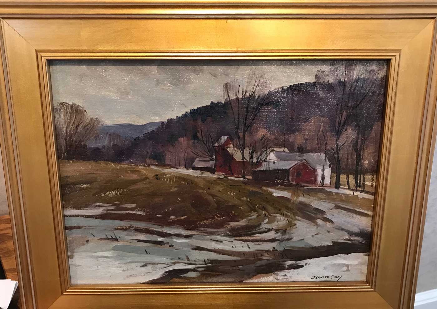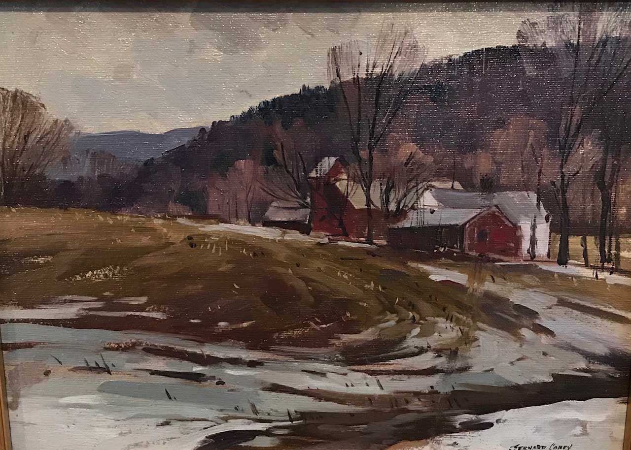 Signed: lower right Scene: New England winter landscape