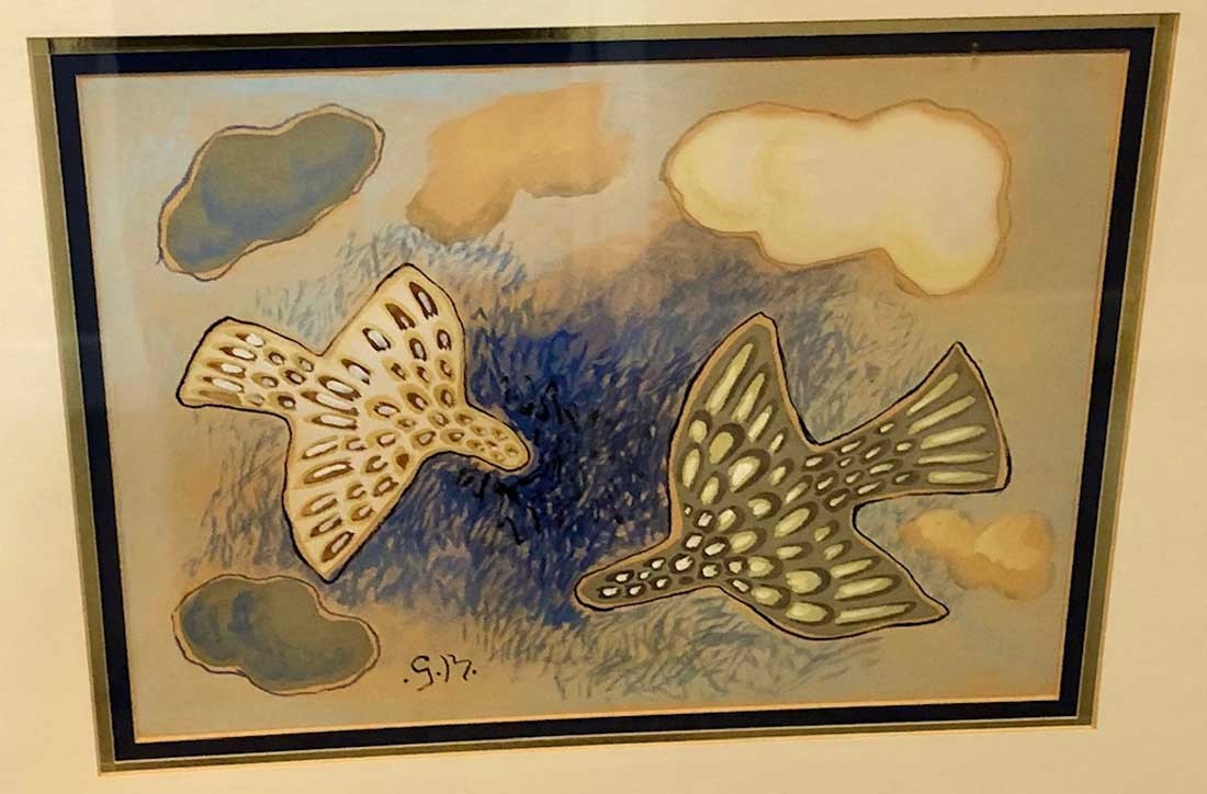 Size: 10x13 w/o frame. Medium: mixed media Signed: initial lower left Scene: modern