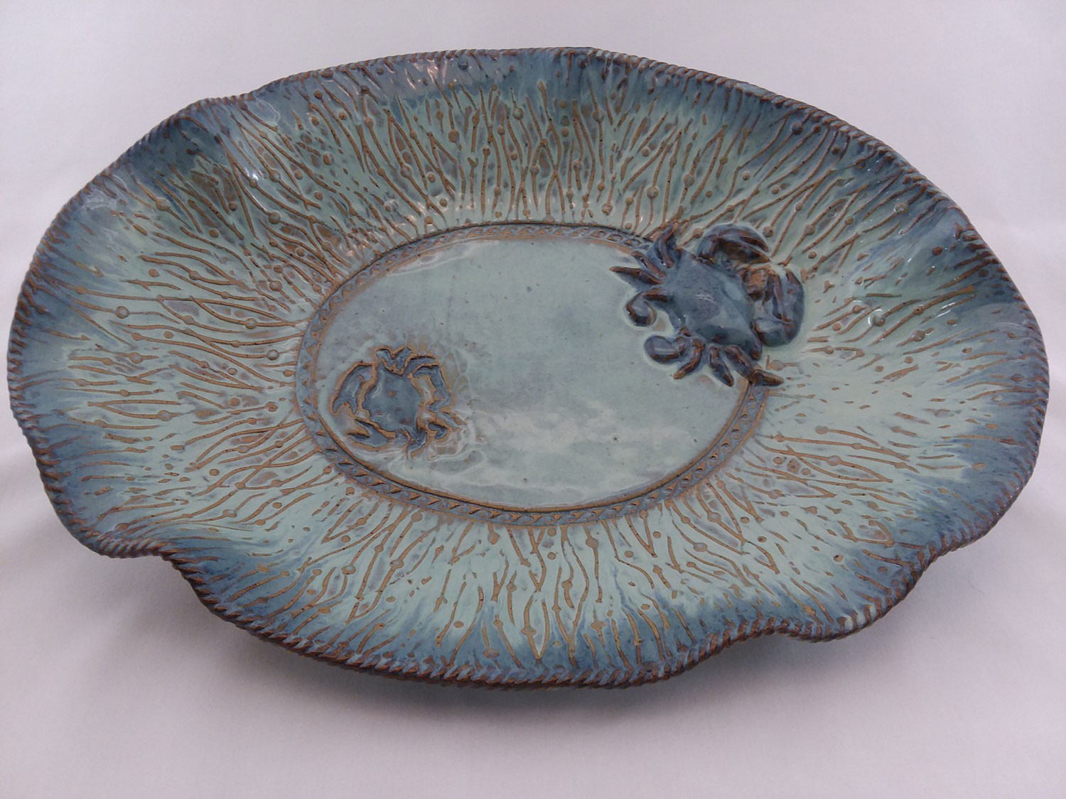 Bring function and beauty to your table with this 20' seafoam and blue serving platter.
