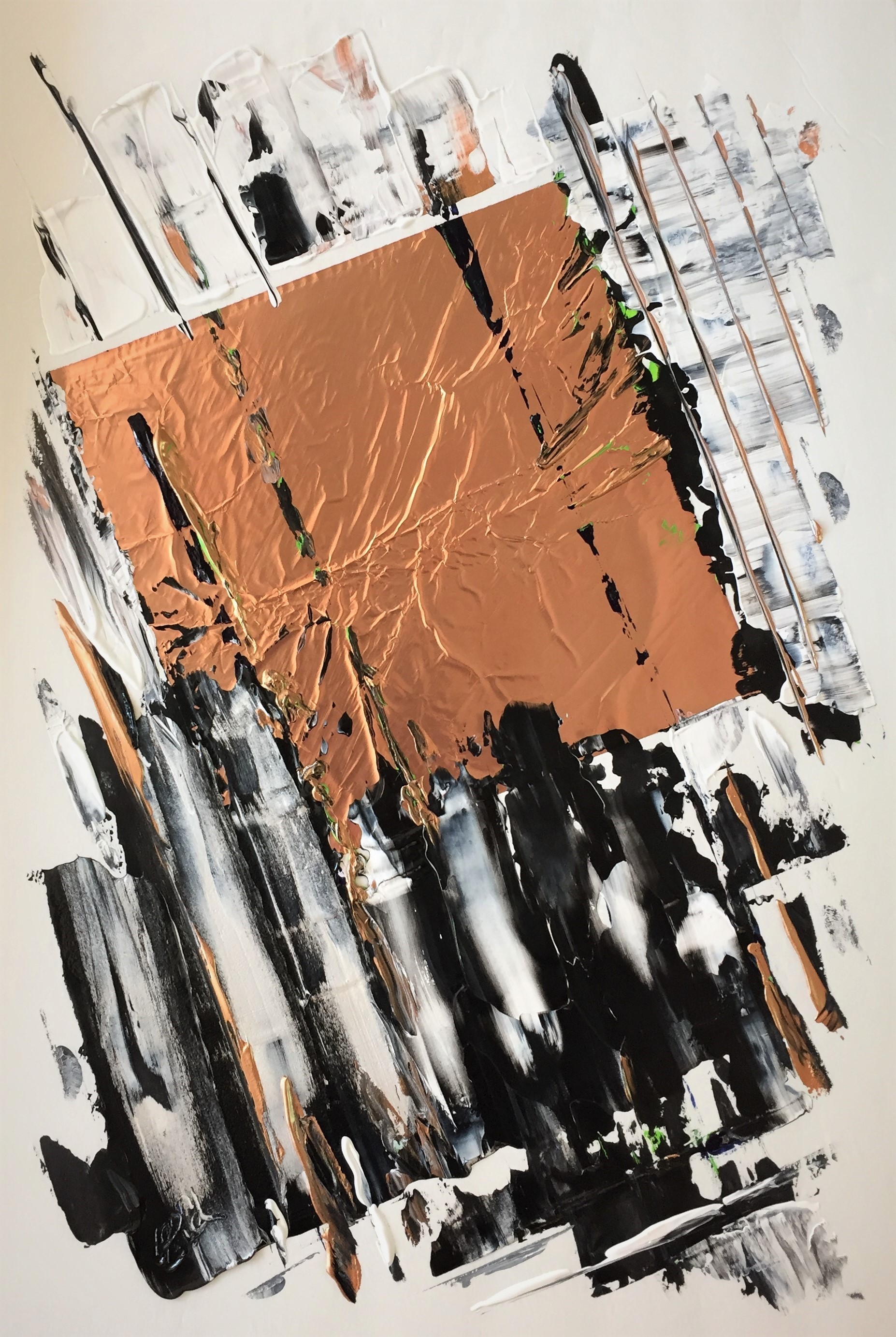 Acrylic and genuine copper foil on foam. Acid free mat and approx 3/4" black wood frame. 26 1/2 x 36