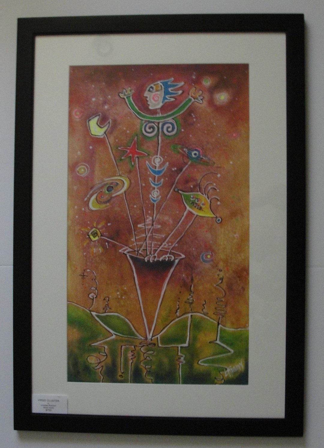 Acrylic and mixed media, framed and matted, image size 29.5 x 17, frame size outside dimensions 39 x 27.